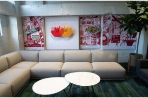 As one of Mastercard’s newest offices in North America, Mastercard Atlanta is an extension of long-standing local partnerships and commitments. The award-winning office is designed with collaboration at the center. From cross-functional teams to executive off-sites and customer-hosting, the office provides a central location for teams to collaborate and align on strategic initiatives. For employees, it also acts as a testing ground to continuously evolve the in-office employee experience, complete with conference rooms with state-of-the-art tech and ‘tech-free zones’ for focused interactions.